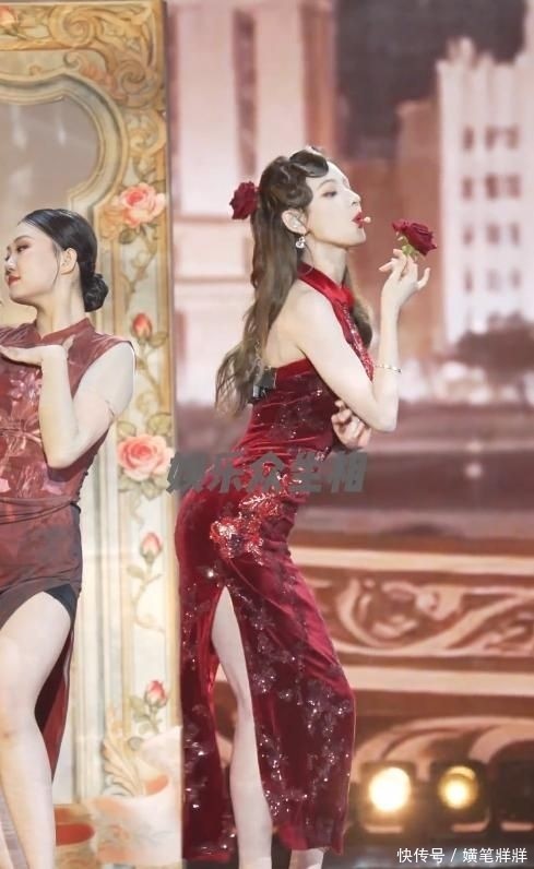 主创团队解释称,该设计意在呼应玫瑰意象——既体现热烈生命力,又融合时光沉淀的东方韵味与当代审美逻辑。单论视觉辨识度,这套造型已足够抢眼;叠加她富于节奏感的舞动表现,瞬间点燃全网讨论热度。