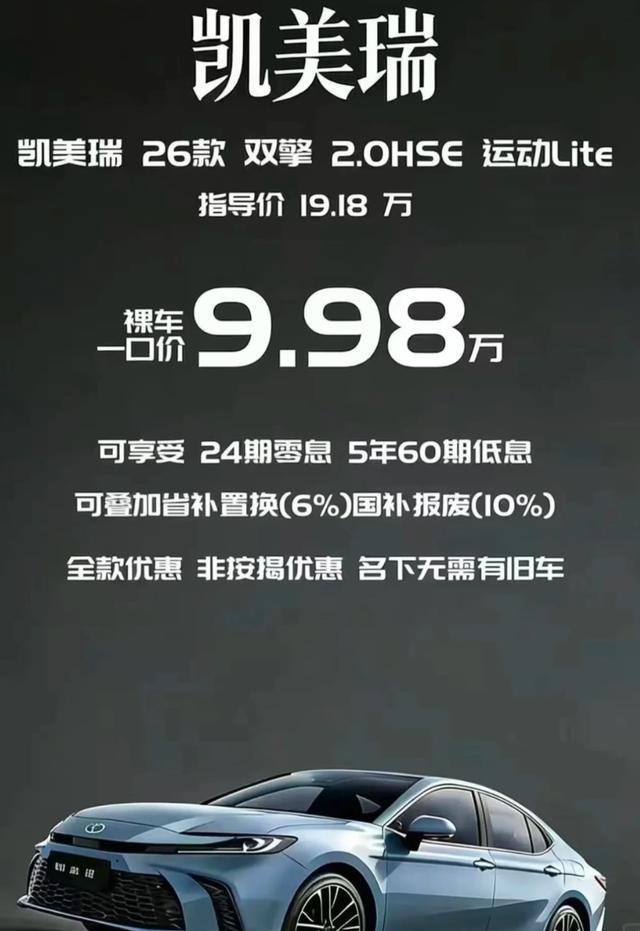 此次网传的凯美瑞双擎低价宣传,首要问题便是价格与真实市场行情严重脱节,违背基本的汽车销售商业逻辑。2026 款凯美瑞双擎 2.0HSE 运动 Lite 版官方指导价为 19.18 万元,据实际调研,目前全国经销商的真实优惠后裸车价约在 15.88 万左右,而宣传中却声称 9.98 万即可入手,还宣称优惠幅度近 9.2 万元,近乎半价销售的力度,在汽车销售市场中根本不具备实现的可能性,这样的价格从一开始就存在明显的虚假性。